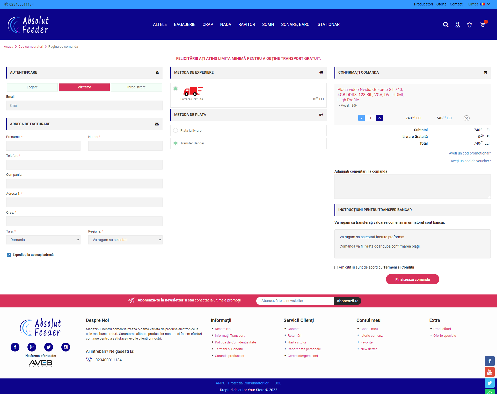 Echipa AWeb a contribuit la crearea si optimizarea designului atat desktop cat si responsive si implementarea sistemului de checkout.