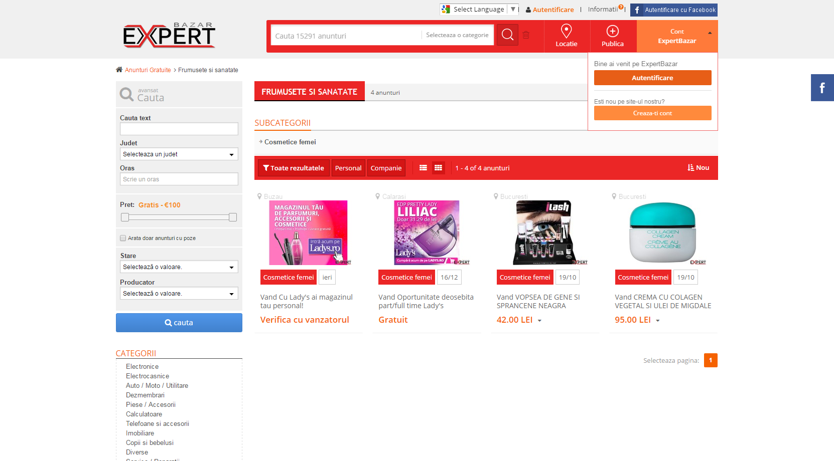 Site de anunțuri online și portal business to business (B2B) cu zeci de mii de produse structurate pe o varietate largă de categorii și subcategorii.