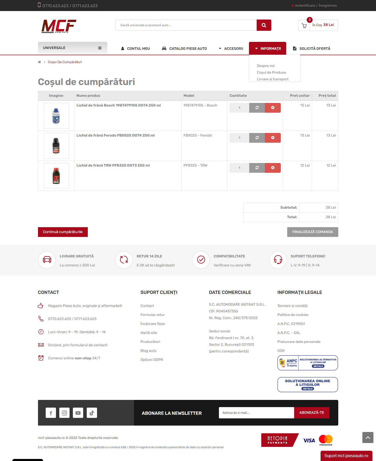 Magazin online ce se ocupă cu comercializarea de piese si accesorii auto.
